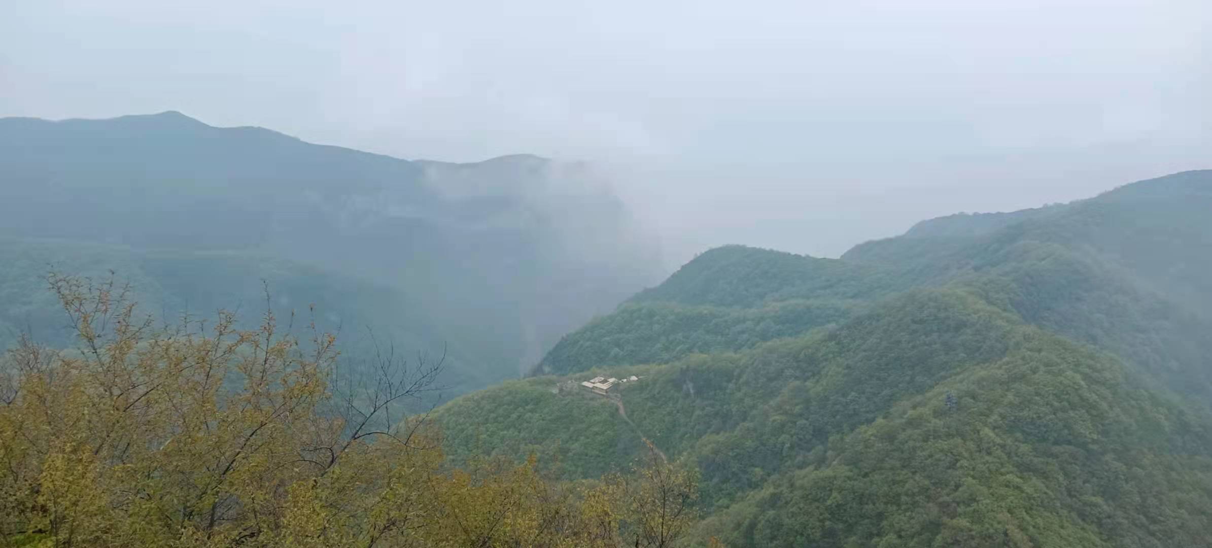 第二天早饭之后,我们坐上了开往茱萸峰的大巴,车沿公路自下而上,爬山穿洞,仰望山巅,群山在云雾里若隐若现,仿佛置身仙境,有种腾云驾雾的感觉。